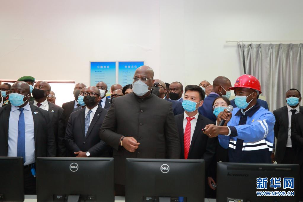 5月13日,刚果(金)总统齐塞克迪(中)在卢阿拉巴省科卢韦齐市视察中刚合资的华刚矿业股份有限公司。