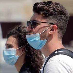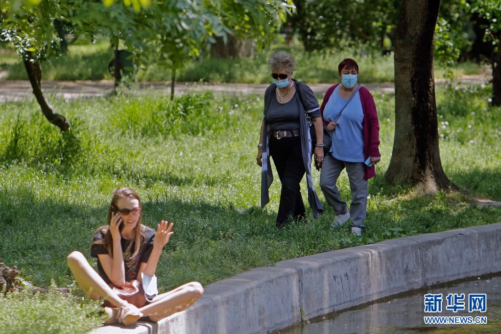 5月14日,市民佩戴口罩在罗马尼亚首都布加勒斯特的一个公园散步。