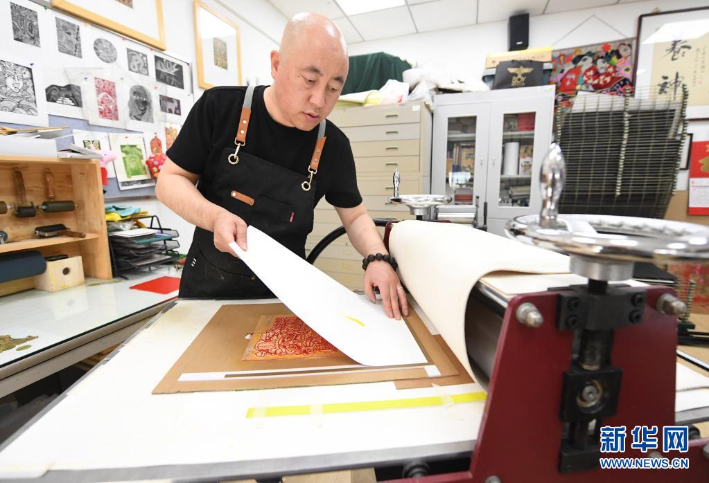 在北京市健翔学校,王昆在制作版画(5月12日摄)。
