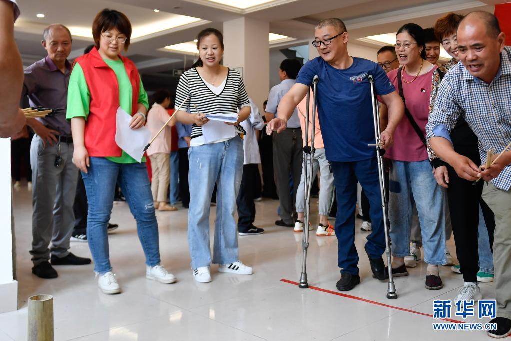当日,在全国助残日来临之际,浙江省湖州市吴兴区八里店镇在前村村党群服务中心举办了一场残疾人趣味运动会,设置套圈、夹弹珠、投壶、飞镖共4个项目,93位残疾人作为运动员参与比赛的角逐。