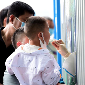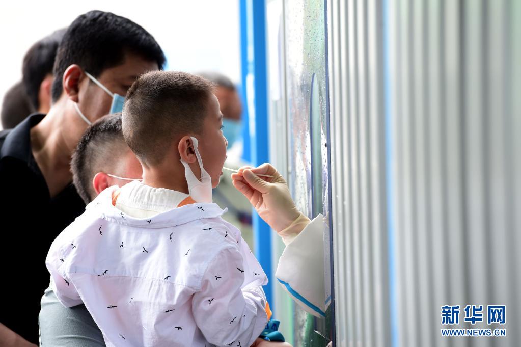 5月15日,在肥西县人民医院,市民接受核酸检测。