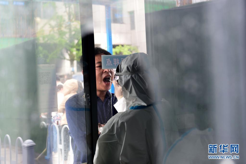 5月15日,在肥西县人民医院,市民接受核酸检测。