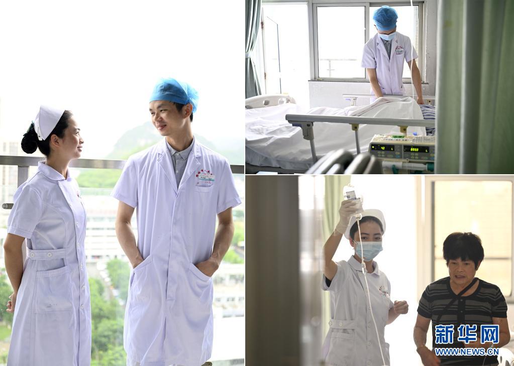 当日是国际护士节。在广西柳州市人民医院,不少护士夫妻双双坚守在各自岗位上,用奉献践行着医护工作者救死扶伤的初心。