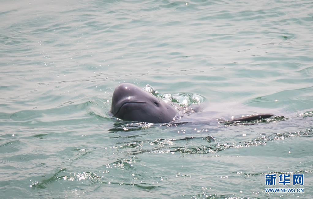 5月11日,在湖北省宜昌市江边,长江江豚在水中嬉戏。