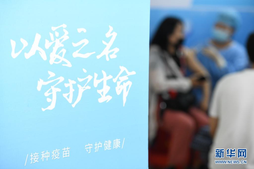 5月15日,在合肥市蜀山区奥体中心方舱接种点,市民在接种新冠疫苗。