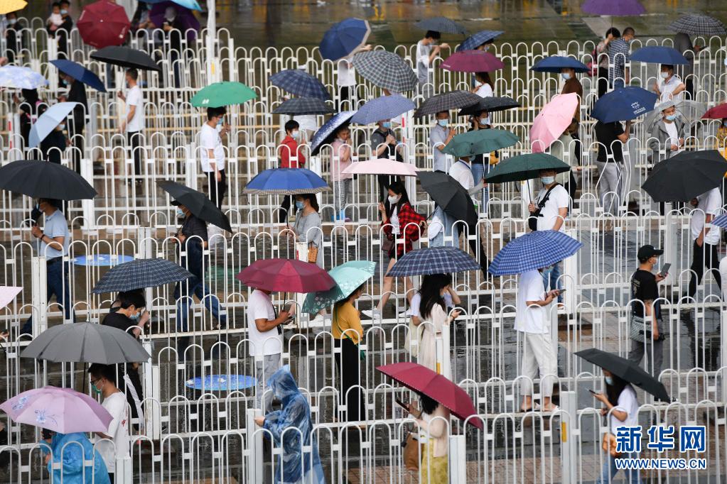 5月15日,在合肥市蜀山区奥体中心方舱接种点,市民排队等待接种新冠疫苗。