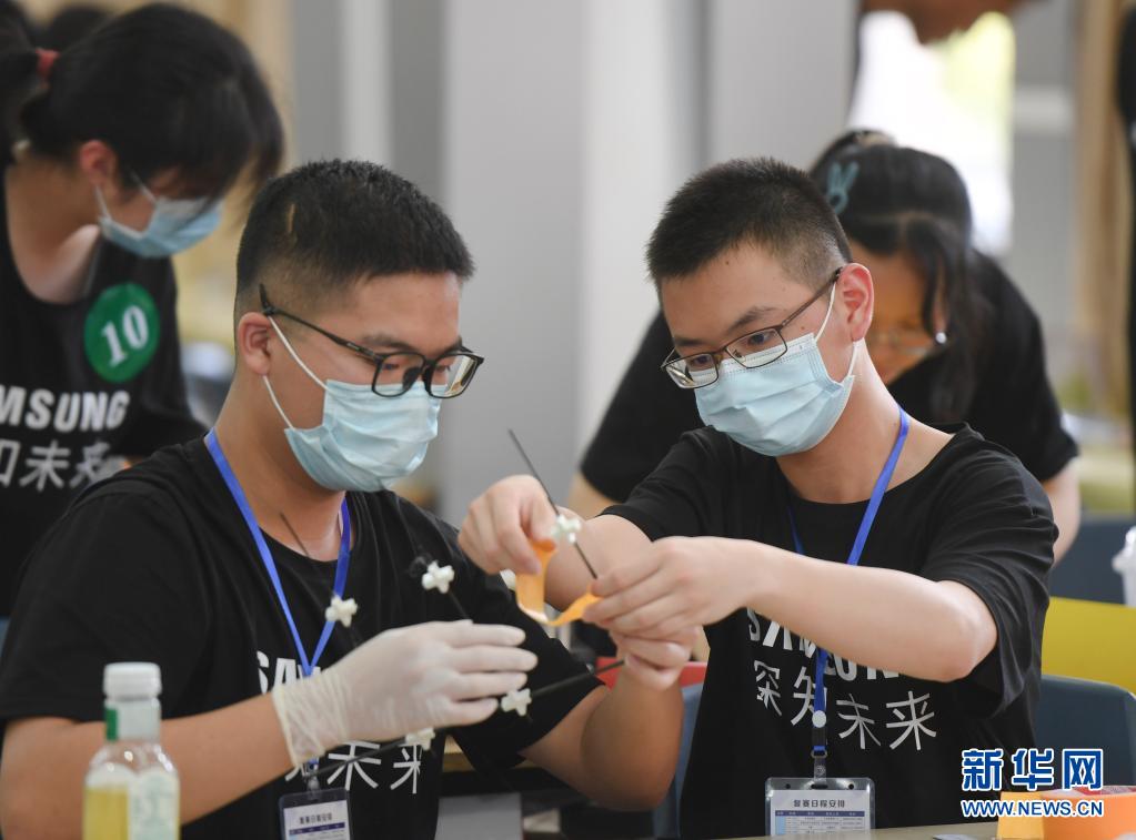 5月15日,选手在“风能利用”命题单元制作风力装置。