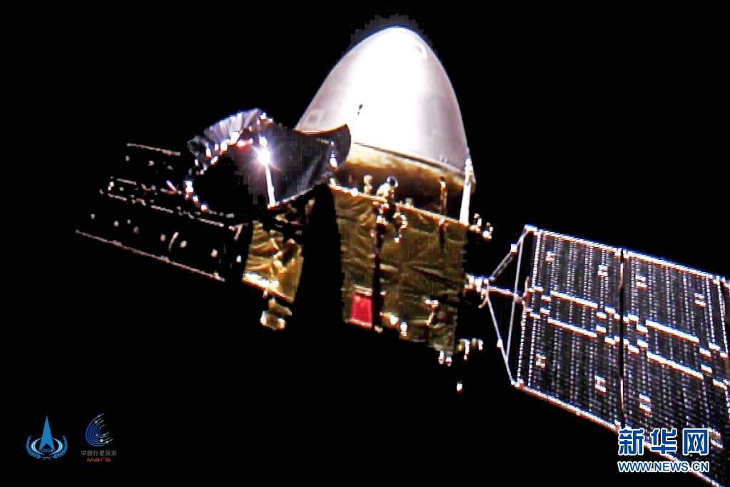 2020年10月1日,国家航天局发布我国首次火星探测任务天问一号探测器飞行图像。