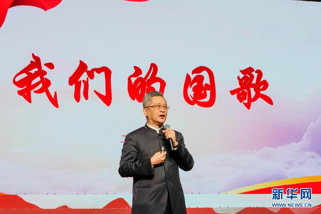 5月15日,重庆市特殊教育中心《我们的国歌》主题音乐党课上,指挥于海讲述国歌背后的故事。