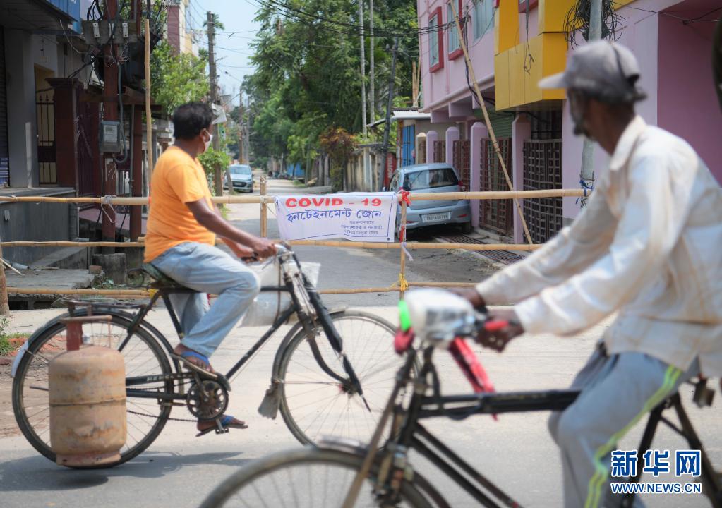 5月15日,人们骑车经过印度阿加尔塔拉一处隔离区。