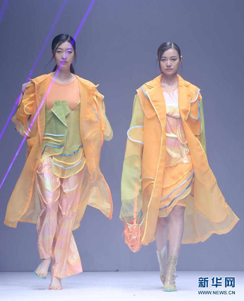 5月15日,模特在北京举行的2021中国国际大学生时装周“浙江科技学院艺术设计与服装学院毕业作品发布会”上展示毕业生服装设计作品。新华社记者 陈建力 摄