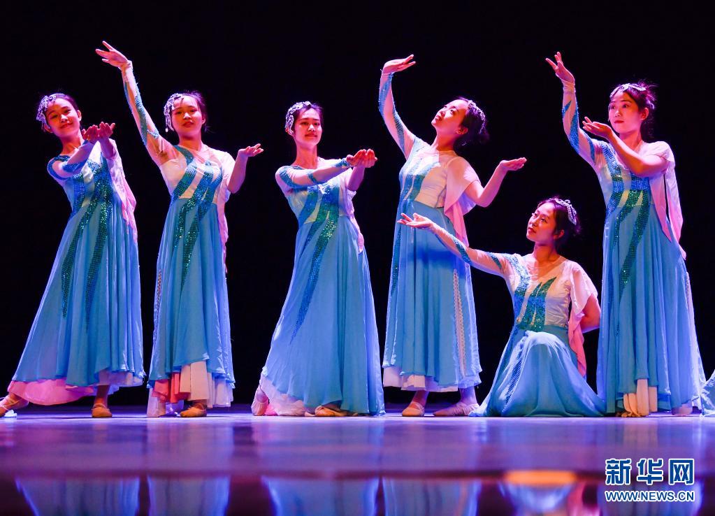 天津理工大学聋人工学院的舞蹈队员们在学校的剧场里进行彩排(5月10日摄)。新华社发(孙凡越摄)