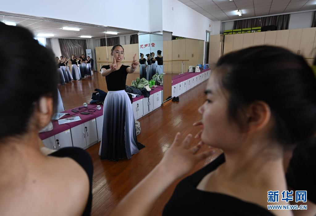 天津理工大学聋人工学院的舞蹈队员们在学院的排练厅里练习(5月8日摄)。新华社记者 李然 摄