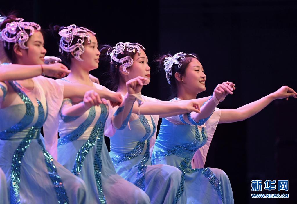 天津理工大学聋人工学院的舞蹈队员们在学校的剧场里彩排(5月10日摄)。新华社记者 李然 摄