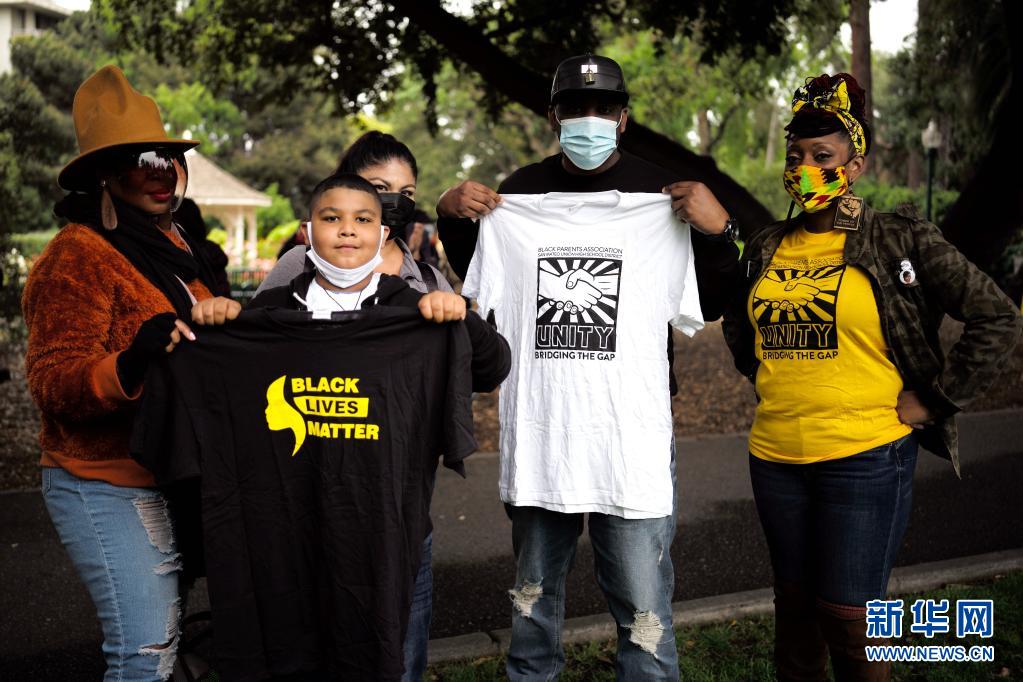 5月15日,在美国加利福尼亚州圣马特奥市,非裔社区代表参加反对种族歧视和仇恨犯罪集会活动。