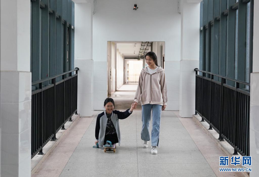 16岁的蒋张子怡是江西上饶中学高中一年级的学生。2010年一场车祸夺去了她的双腿,如今的她只能依靠滑板代步,用双手前行,为此,大伙都称她“滑板姑娘”。