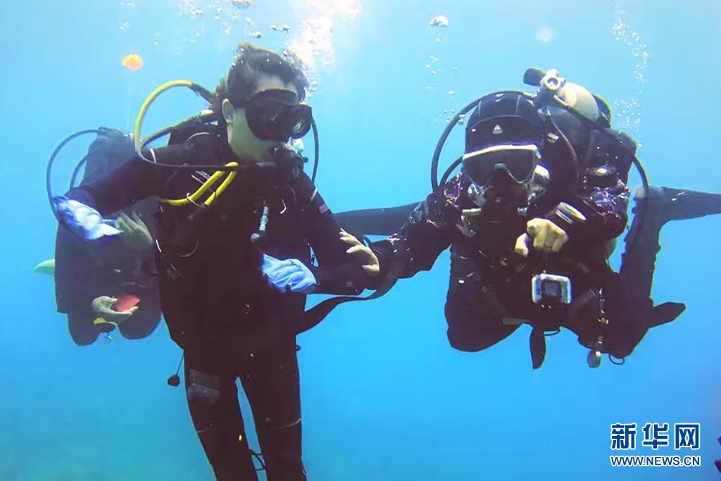 王筱莉(左)在菲律宾考潜水证(2017年12月摄)。