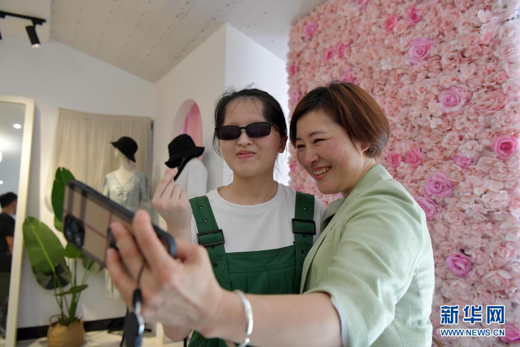 王颖(右)带着杨虹在逛街、自拍(5月13日摄)。
