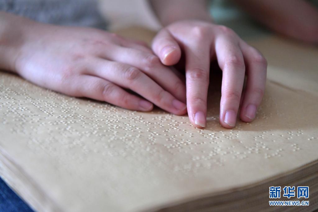 杨虹在家中阅读盲文书籍,培养自己的语感(5月13日摄)。