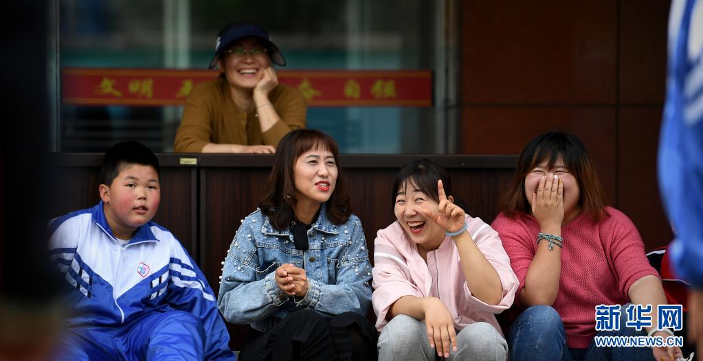5月13日,凤城市特殊教育学校几名老师和自由活动的学生们说笑。新华社记者 蔡湘鑫 摄