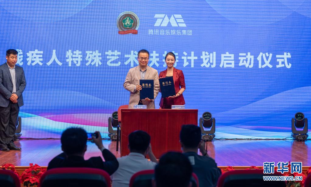 5月16日,在中国盲文图书馆举办的残疾人特殊艺术扶持计划启动仪式上,中国残疾人事业新闻宣传促进会与腾讯音乐娱乐集团代表参加签约仪式。