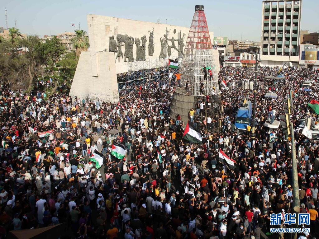 5月15日,人们在伊拉克首都巴格达举行抗议示威活动,声援巴勒斯坦民众。
