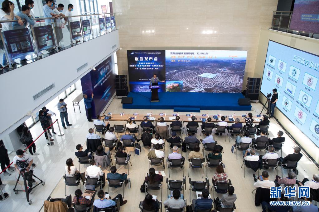 2021年5月17日,中科院高能物理研究所研究员曹臻在发布会上介绍成果。