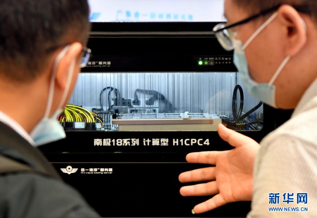 5月17日,厂商代表(右)在大会上向参会人员介绍服务器冷却技术。