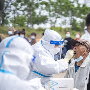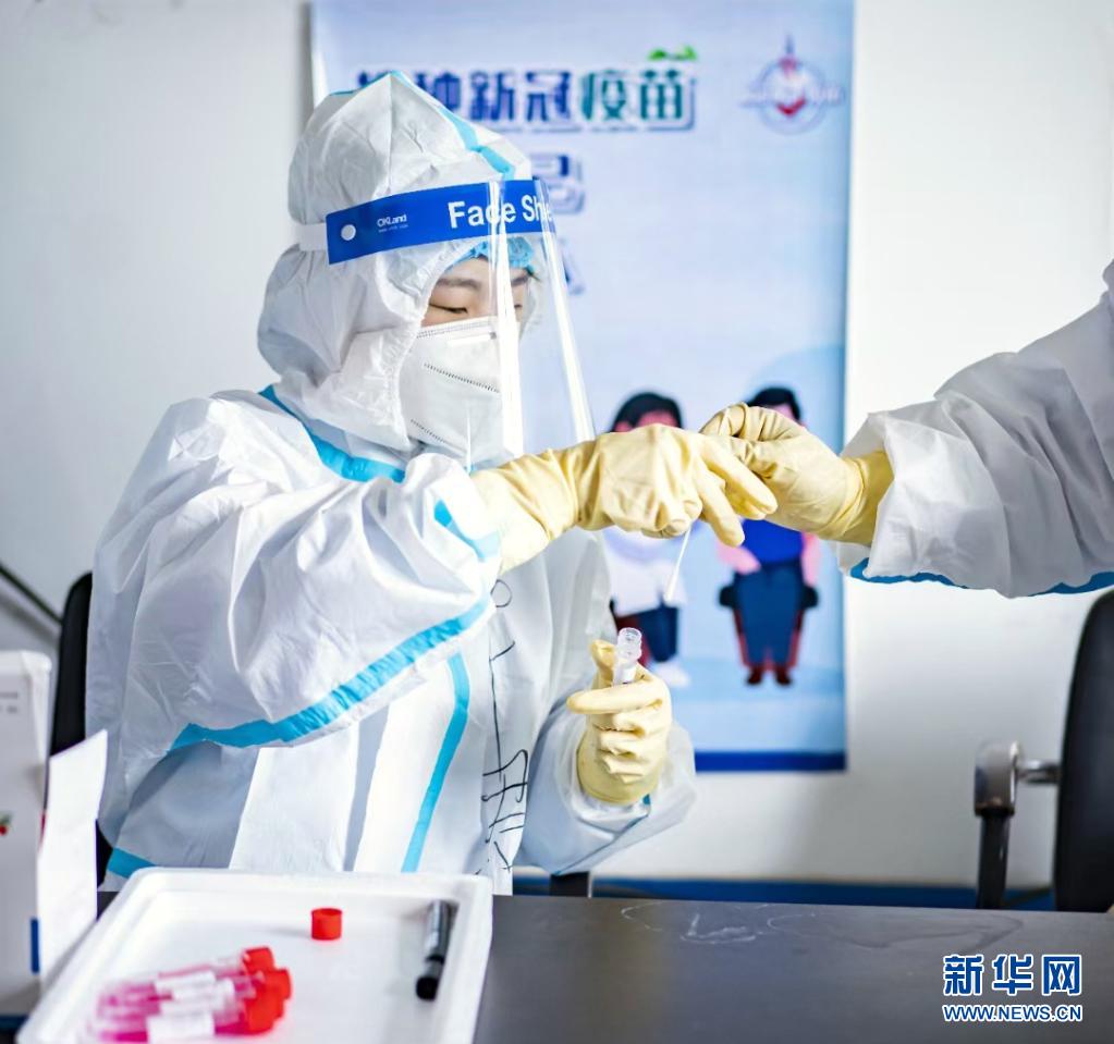 5月16日,医护人员在营口市鲅鱼圈区芦屯镇小望海村收集核酸检测样本。