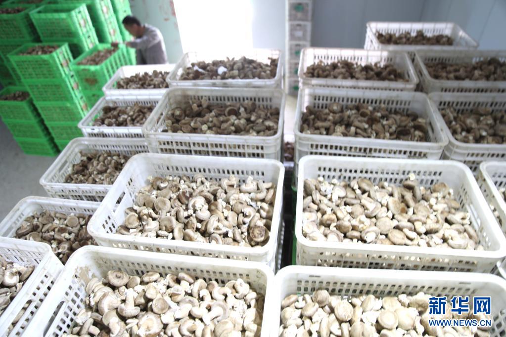 5月17日,农民在承德县石灰窑镇“农光互补”食用菌园区将采收的香菇运往冷库。新华社发(刘环宇 摄)