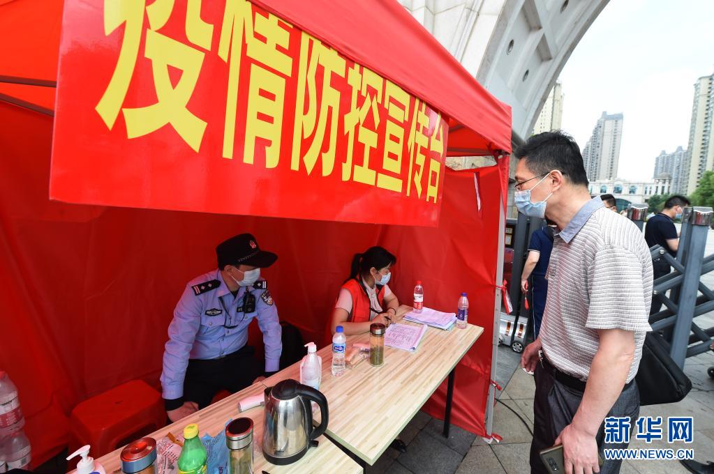 5月17日,在六安市裕安区恒大御景湾小区,工作人员在登记小区居民信息。