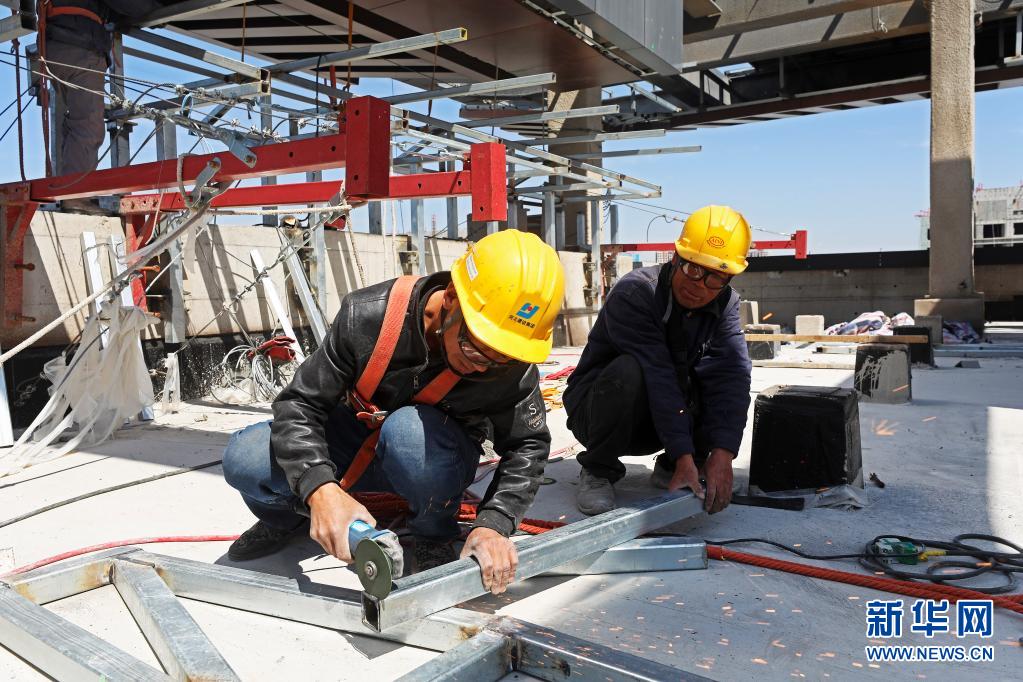5月17日,工人在冬奥会非注册VIP接待中心工程现场施工。新华社发(武殿森 摄)