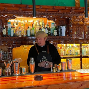 才仁俄赛在餐厅调酒(4月12日摄,手机照片)。新华社记者 刘江 摄