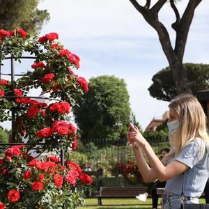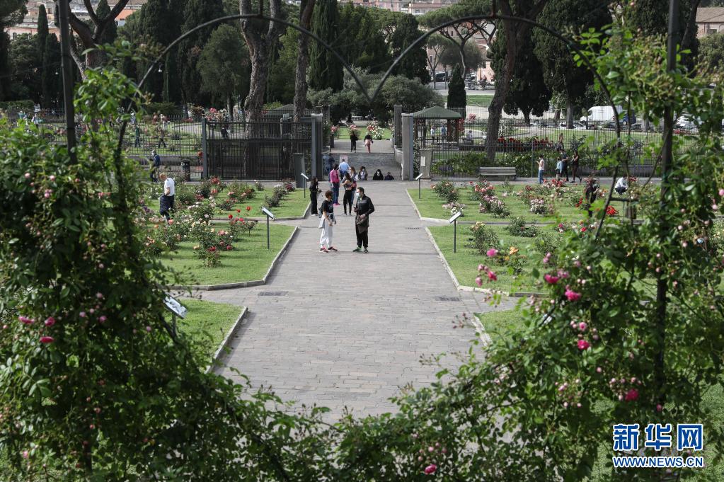 5月17日,人们在意大利首都罗马玫瑰园游览。
