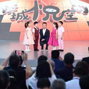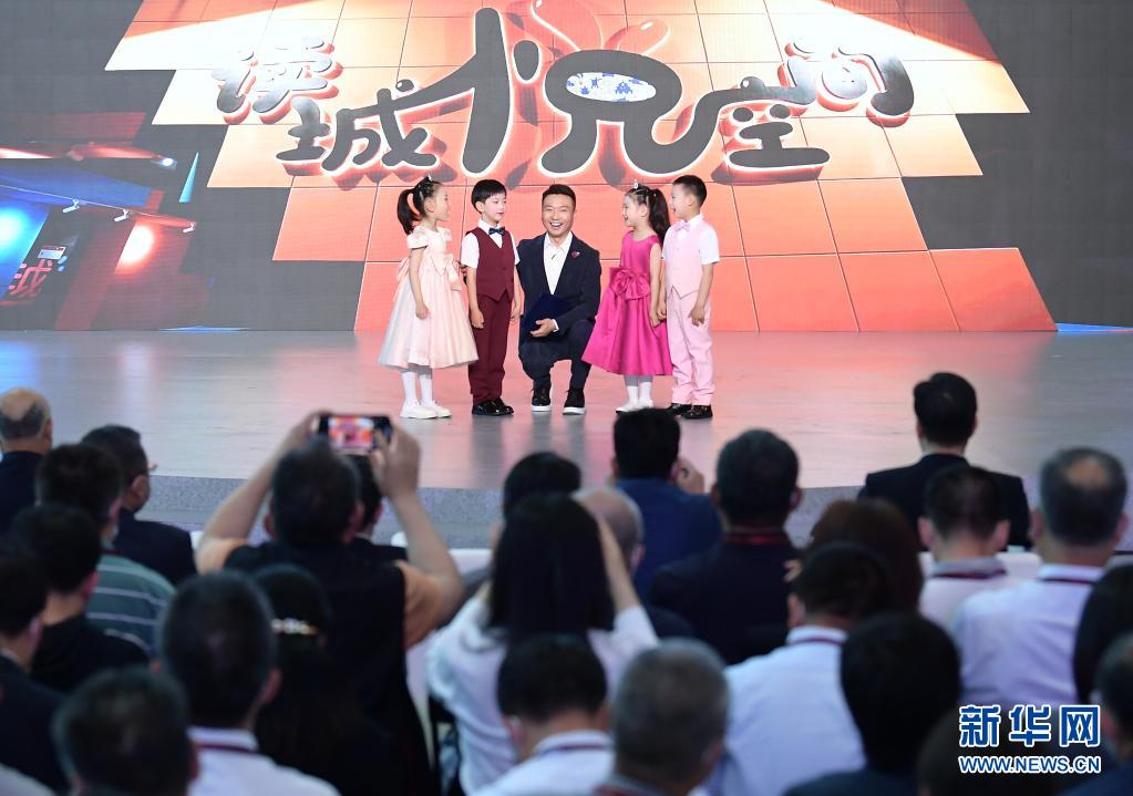 5月18日,在2021年“国际博物馆日”中国主场活动开幕式上,主持人康辉(中)同小朋友们互动。