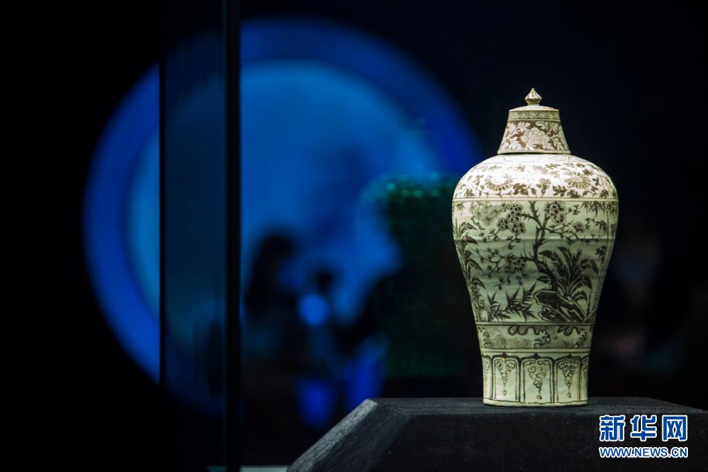 5月18日在南京博物院拍摄的明洪武釉里红岁寒三友纹梅瓶。