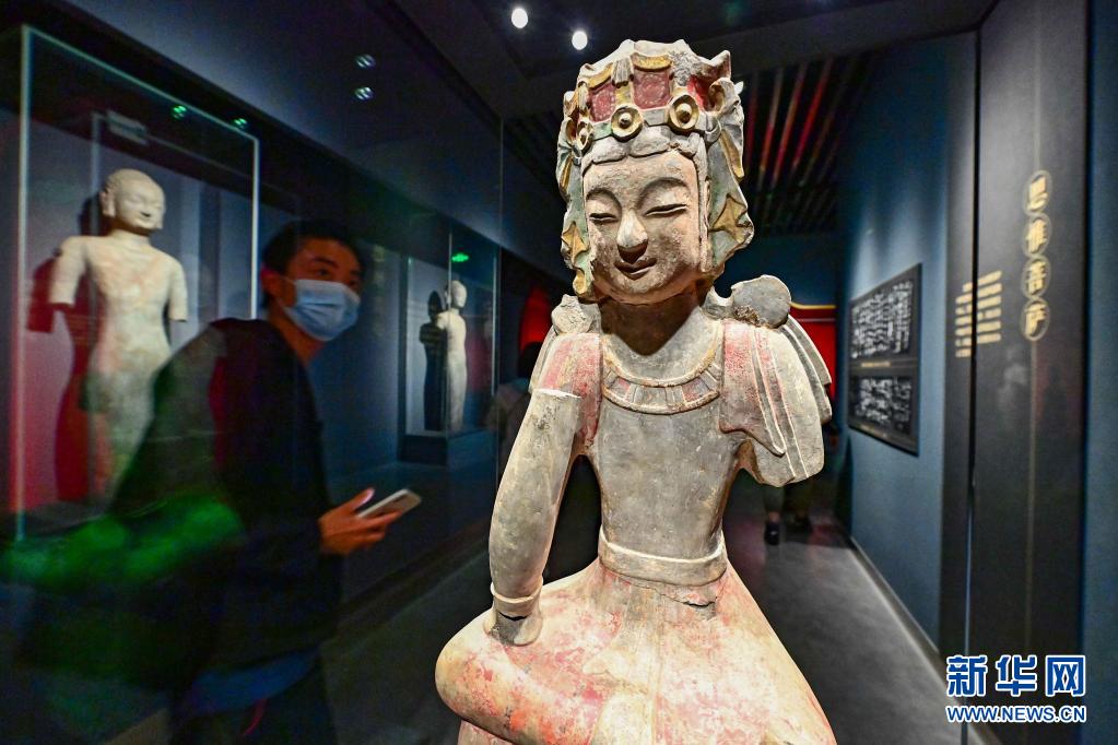 5月18日,参观者在山东省青州市博物馆里观看展览。