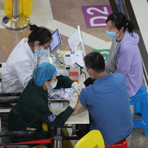 5月18日,市民在沈阳市大东区新冠疫苗接种方舱接种新冠疫苗。
