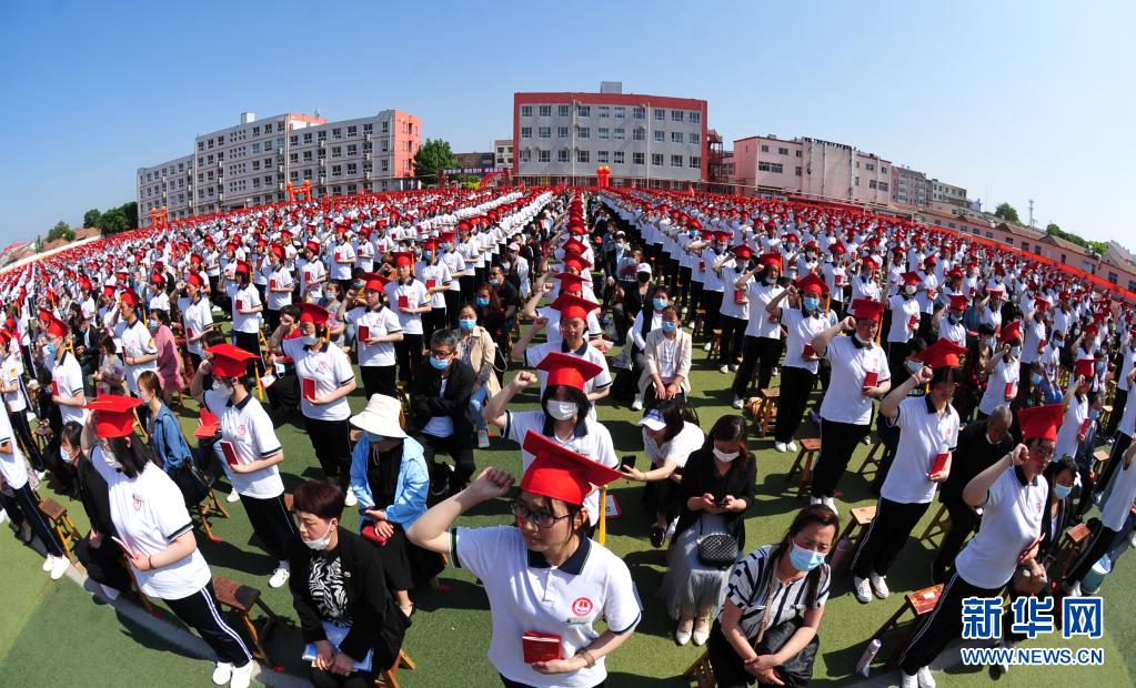 5月18日,泊头市第二中学学生在成人礼活动中宣誓。