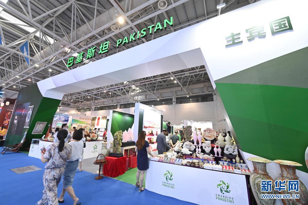 5月18日,观众在巴基斯坦展位参观。