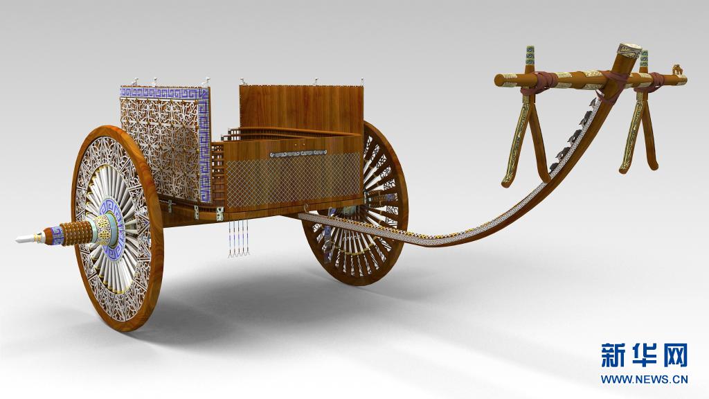 这是马家塬西戎墓葬出土的一辆战国马车的复原效果图。