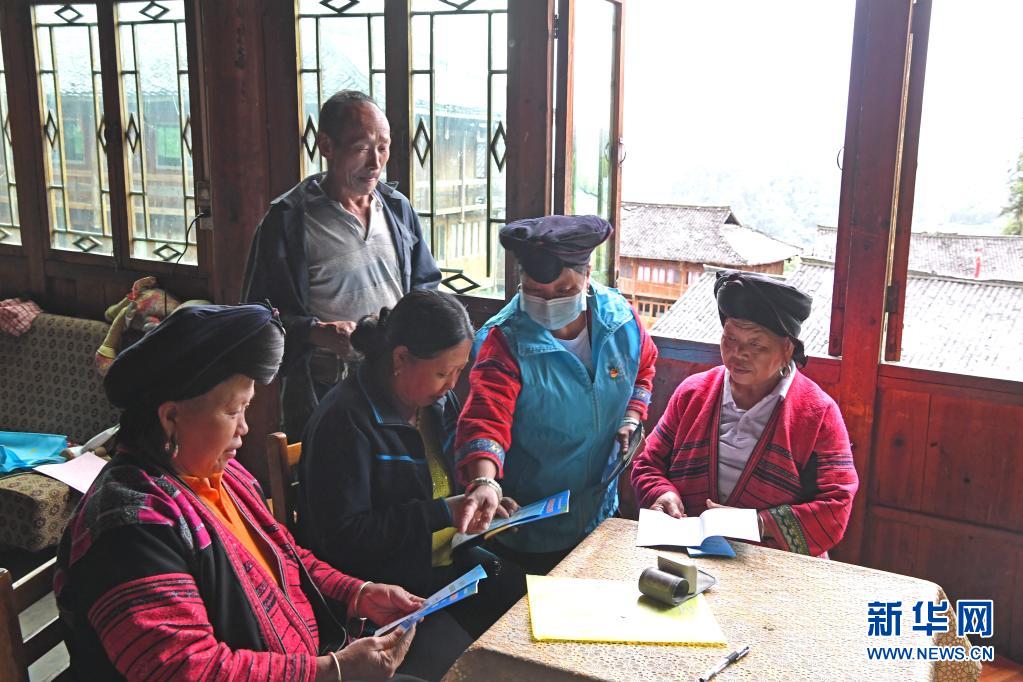 5月18日,在广西龙胜各族自治县龙脊镇小寨村,潘继萍(右二)上门宣传新冠肺炎防疫知识。