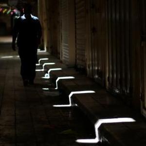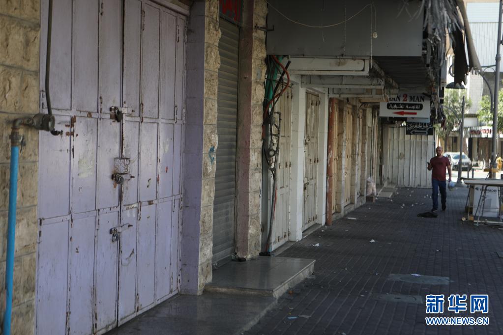 5月18日,一名男子经过约旦河西岸城市希伯伦街头关闭的店铺。