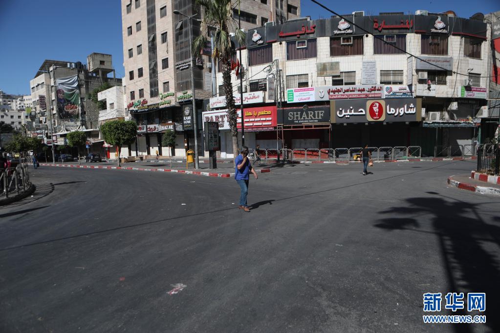 5月18日,人们经过约旦河西岸城市希伯伦街头关闭的店铺。