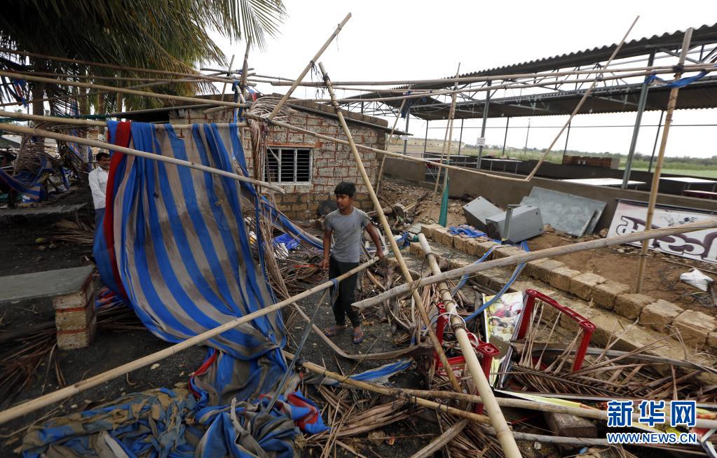 5月18日,人们在印度古吉拉特邦索姆纳特地区的乌纳镇附近查看被摧毁的屋顶。