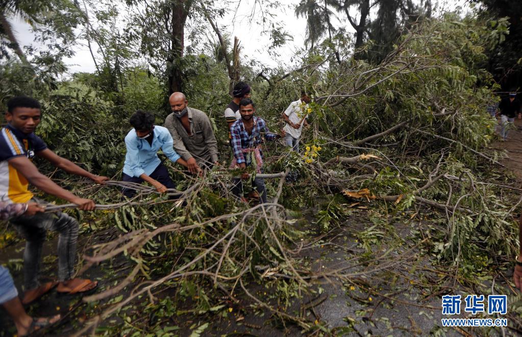 5月18日,人们在印度古吉拉特邦索姆纳特地区的乌纳镇附近查看被折断的树枝。