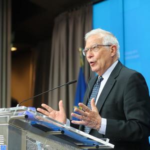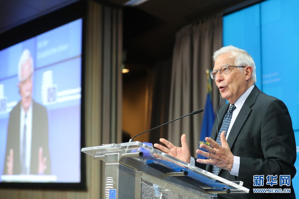 5月18日,在比利时布鲁塞尔,欧盟外交与安全政策高级代表博雷利在会议后举行新闻发布会。