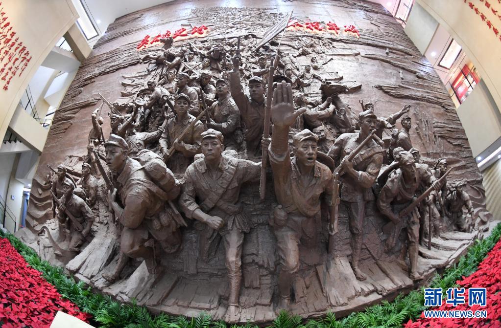这是广西桂林全州县红军长征湘江战役纪念馆内的雕塑(4月26日摄)。新华社记者 陆波岸 摄