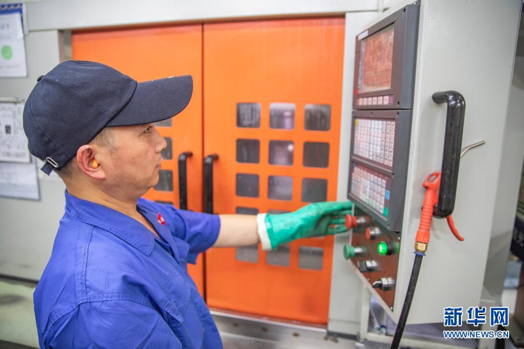 5月18日,在重庆嘉泰精密机械有限公司机加车间,工作人员在智能数控屏上调节打磨加工参数。
