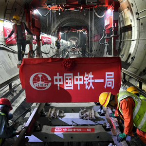 5月19日,技术人员在轨道连接后进行测量。新华社记者 李紫恒 摄